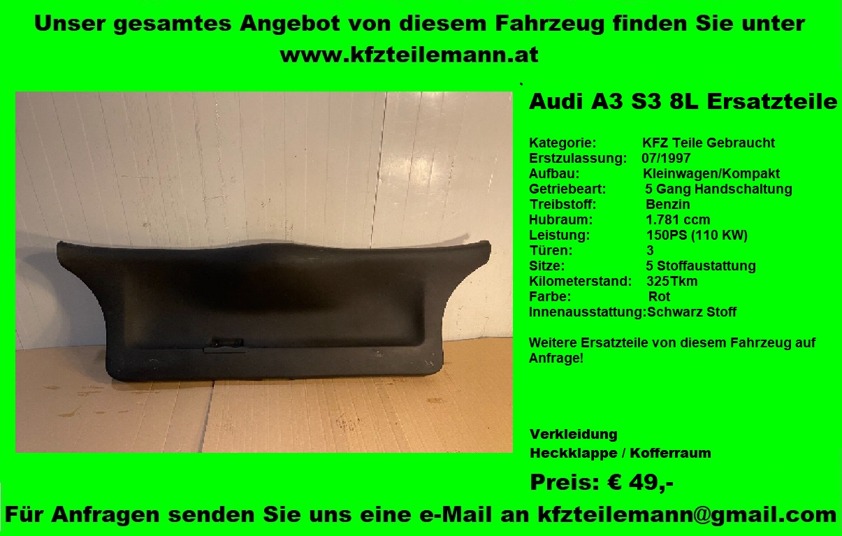 Verkleidung Heckklappe Audi A3 8L S3